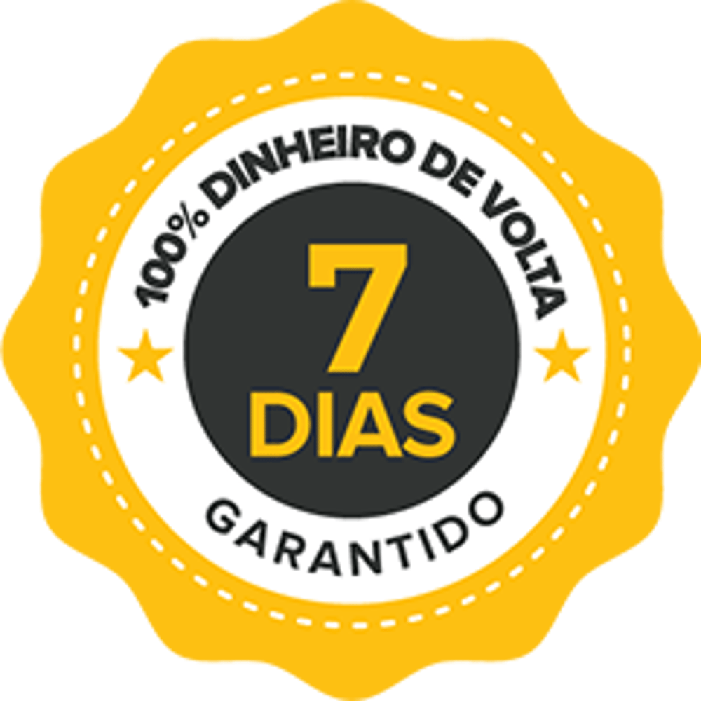 O código de defesa consumidor (Art. 49) garante 7 dias para solicitar reembolso em caso de insatisfação com o produto. E se por QUALQUER RAZÃO você entender que este treinamento não é para você, basta me avisar e que te devolvo cada centavo que você investiu, sem qualquer questionamento.